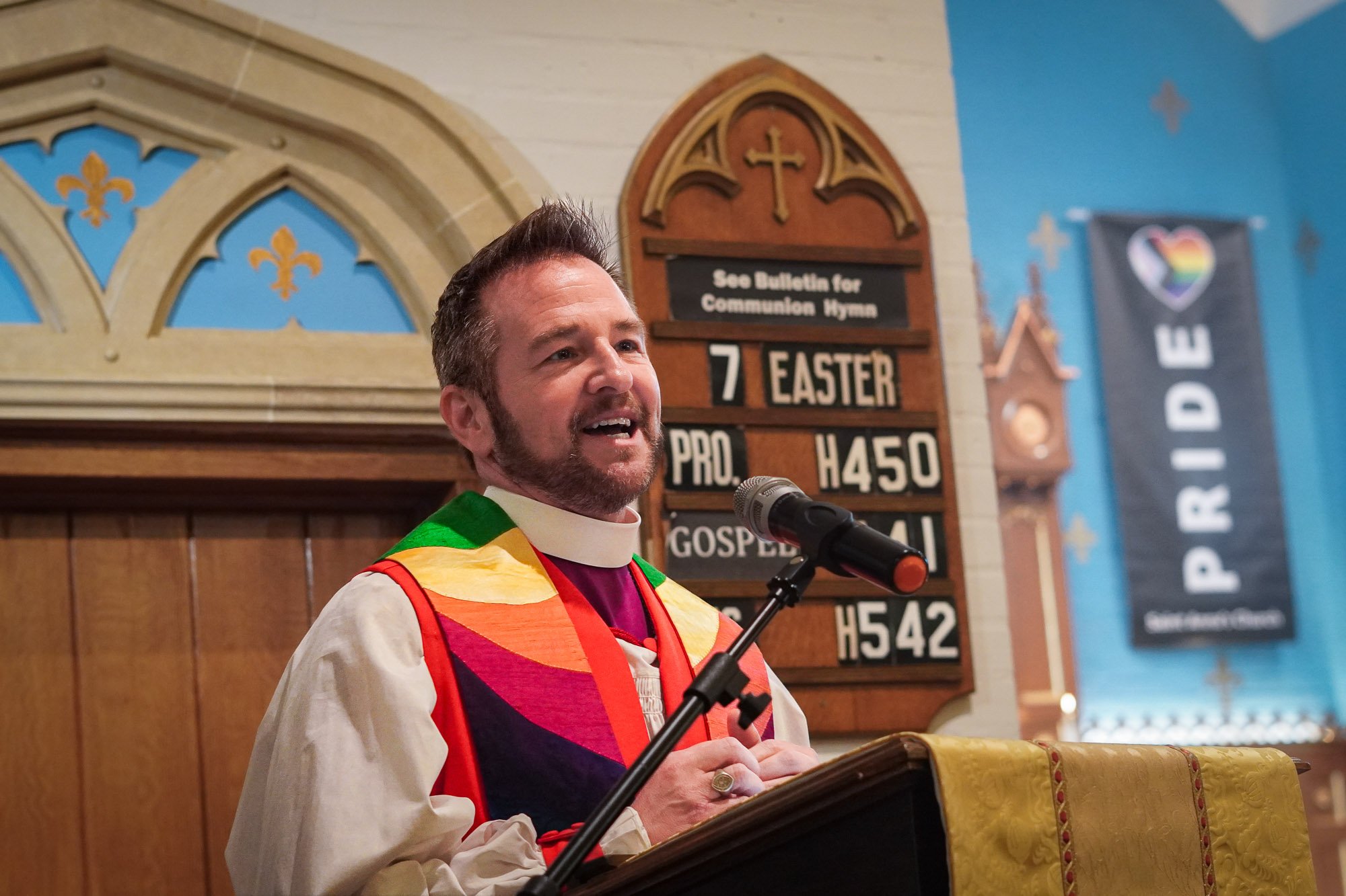 Rev. Brown serves as the current bishop for Maine’s 57 Episcopal churches, an elected role where he helps with the oversight of the region as a whole. While the bishop isn’t involved in the day-to-day life of our church, he still has a lot of important work to occupy his time, and is always on the move. He tries to make it a point to visit us every year or so and get to know us better (always a treat; he’s so nice!). He lives in Portland, where his husband Tom Mousin serves as a hospice chaplain and pastors St. Peter’s Church.